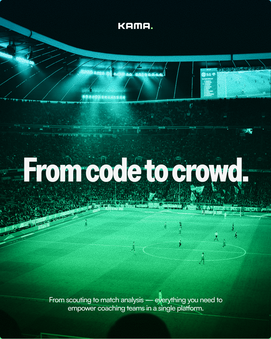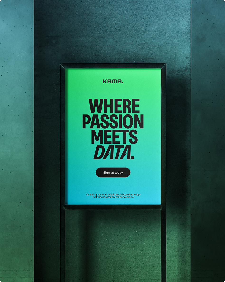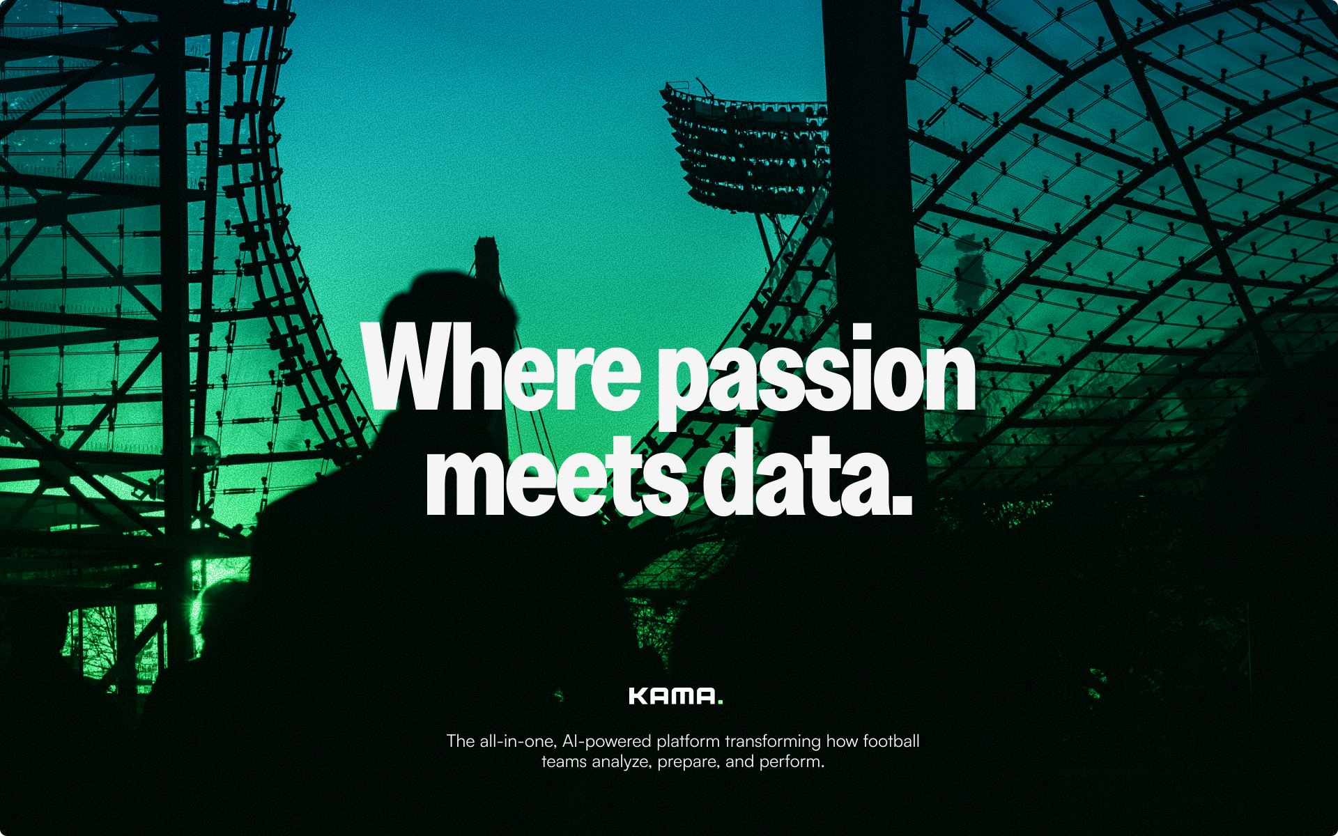 Kama is a football analytics platform recognised as Sport Innovation of the Year 2022, now used by leading Serie A coaching teams and professional clubs. I led the brand strategy and developed the identity from the ground up, guiding its evolution across products, interfaces, and live environments.